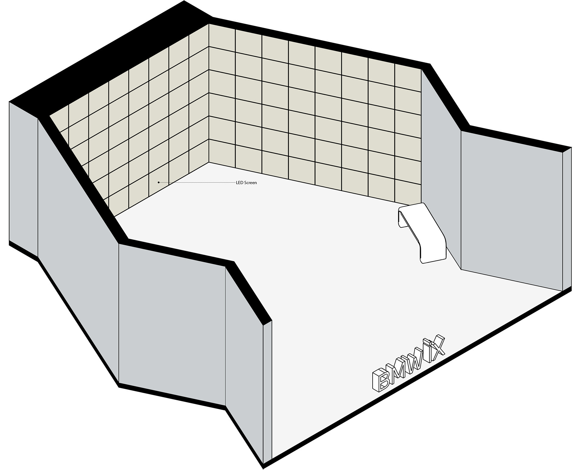 Through the principles of light, reflection, and symmetry, the design emphasizes the sculptural form of the BMW iX while encouraging visitors to circulate around the vehicle and actively engage with the experience. The exhibition presents an immersive and contemporary environment where digital art, automotive design, and architectural space converge.